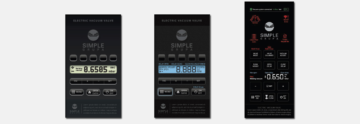 I also designed software which should be showed on the screen. Development stage for the software Intelligent Vacuum valve had 30 screens.